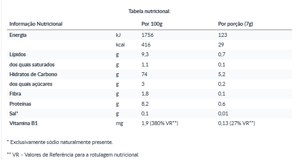 Modo de Conservação: Conservar em local fresco e seco. Depois de aberta, a embalagem deve ser consumida no máximo 14 dias. Não consumir se a embalagem parecer danificada.